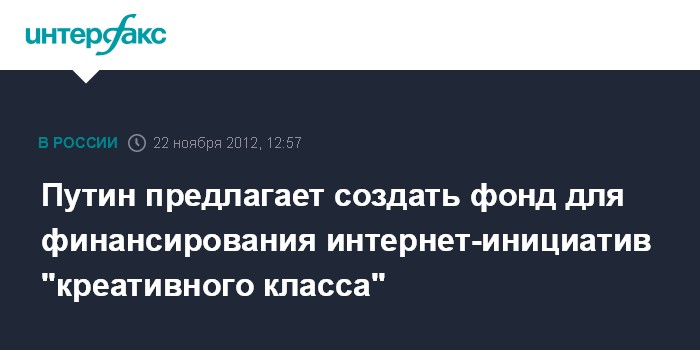 Путин предлагает создать фонд для финансирования интернет-инициатив "креативного класса"