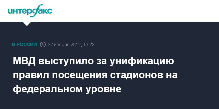Москва. 22 ноября. INTERFAX.RU - Руководитель Главного управления по обеспечению охраны общественного порядка МВД Юрий Демидов заявил, что для исправления ситуации на футбольных стадионах в стране необходимо принимать меры на федеральном уровне.