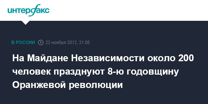 Киев. 22 ноября. INTERFAX.RU - На Майдане Независимости в центре Киева проходит акция, посвященная 8-й годовщине Оранжевой революции - событий, происходивший во время президентских выборов в Украине в 2004 году.