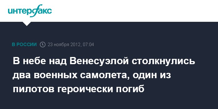 В небе над Венесуэлой столкнулись два военных самолета, один из пилотов героически погиб