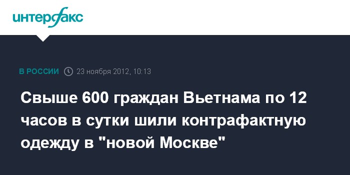 Свыше 600 граждан Вьетнама по 12 часов в сутки шили контрафактную одежду в "новой Москве"