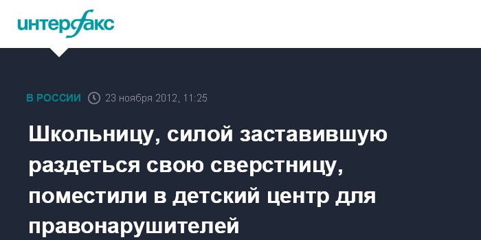 Владивосток. 23 ноября. INTEFAX.RU - Суд отправил 13-летнюю владивостокскую школьницу на двое суток в центр временного содержания несовершеннолетних правонарушителей за то, что она, угрожая ножом, заставила сверстницу раздеться, а затем сфотографировала ее, тем самым вымогая деньги.