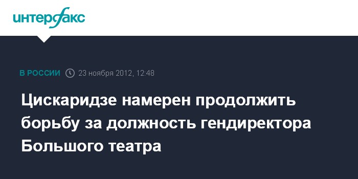 Москва. 23 ноября. INTERFAX.RU - В пресс-службе Большого театра убеждены, что история с письмом в поддержку назначения гендиректором ГАБТ Николая Цискаридзе является частью борьбы за эту должность.