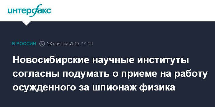 Новосибирские научные институты согласны подумать о приеме на работу осужденного за шпионаж физика