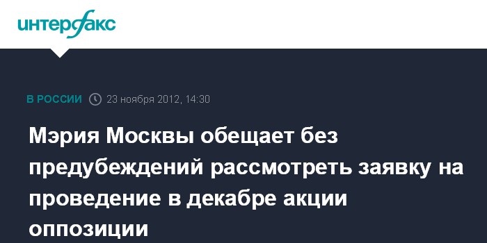 Мэрия Москвы обещает без предубеждений рассмотреть заявку на проведение в декабре акции оппозиции