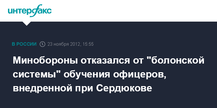Минобороны отказался от "болонской системы" обучения офицеров, внедренной при Сердюкове