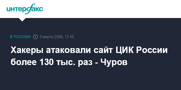 Москва. 3 марта. INTERFAX.RU - Более 130 тыс. атак было совершено на сайт Центризбиркома в день выборов, сообщил глава ведомства Владимир Чуров.