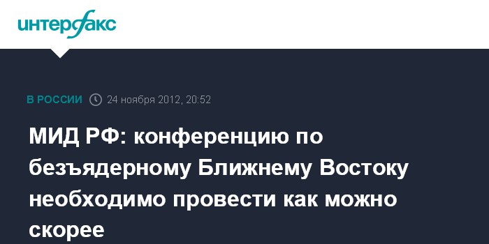 МИД РФ: конференцию по безъядерному Ближнему Востоку необходимо провести как можно скорее