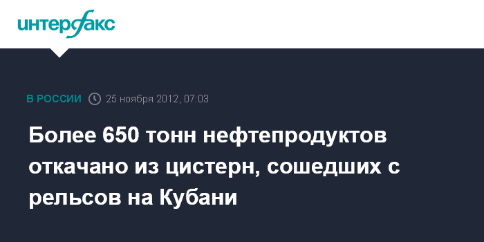 Москва. 25 ноября. ИНТЕРФАКС - Специалисты к утру воскресенья завершили работы по откачке нефтепродуктов из цистерн, сошедших с рельсов в Темрюкском районе Краснодарского края, сообщает МЧС России.