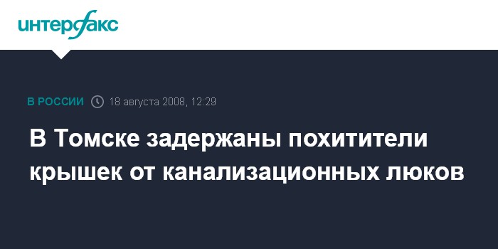 За последнюю неделю июля с улиц Томска было похищено 154 крышек от колодцев водопровода и ливневой канализации. Нанесенный городу материальный ущерб оценивается почти в 1 млн рублей.