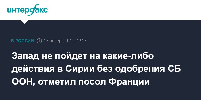 Москва. 25 ноября. INTERFAX.RU - В Париже не считают возможными какие-либо силовые действия в Сирии в обход Совета Безопасности ООН, заявил посол Франции Жан де Глиниасти.