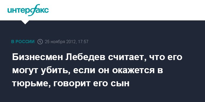 Бизнесмен Лебедев считает, что его могут убить, если он окажется в тюрьме, говорит его сын