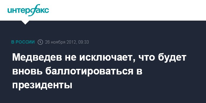 Москва. 26 ноября. INTERFAX.RU - Премьер РФ Дмитрий Медведев не исключает своего возвращения в Кремль, если получит поддержку россиян.