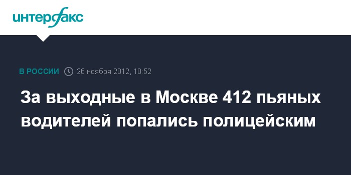 Москва. 26 ноября. INTERFAX.RU - Очередной рейд "Нетрезвый водитель" проводился в Москве с вечера пятницы по воскресенье, задержаны более 400 человек, управлявших машинами пьяными.