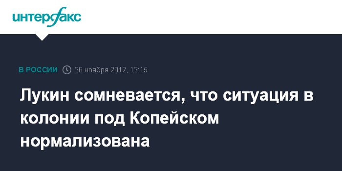 Москва. 26 ноября. INTERFAX.RU - Уполномоченный по правам человека в РФ Владимир Лукин имеет много вопросов по поводу того, что и по каким причинам произошло в колонии №6 под Копейском и какие меры будут приняты для нормализации ситуации.