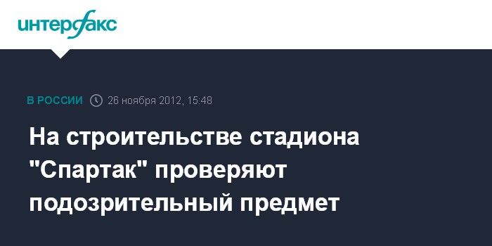 Москва. 26 ноября. INTERFAX.RU - Полиция проверяет подозрительный предмет, обнаруженный на строящемся стадионе "Спартак", сообщили "Интерфаксу" в пресс-службе ГУ МВД России по Москве.