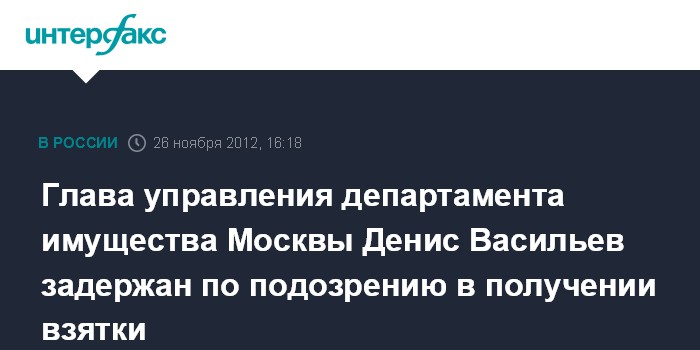 Глава управления департамента имущества Москвы Денис Васильев задержан по подозрению в получении взятки