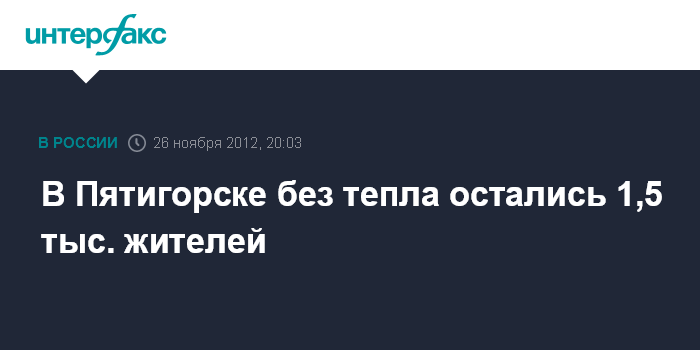 Москва. 26 ноября. INTERFAX.RU - Прорыв теплотрассы в Пятигорске привел к тому, что без отопления остались 1,5 тыс. человек, сообщили "Интерфаксу" в пресс-службе МЧС России.