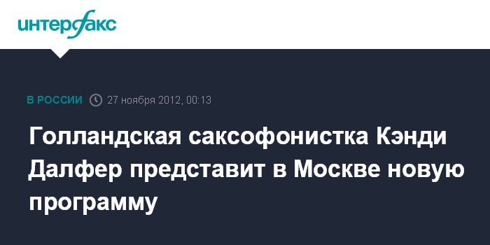 Москва. 26 ноября. ИНТЕРФАКС - Саксофонистка из Амстердама Кэнди Далфер выступит 30 ноября в Светлановском зале Московского международного Дома музыки в рамках мирового турне.