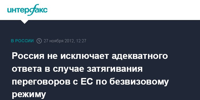 "Если к концу 2013 года не будет прорыва в плане разработки соглашения( по безвизовому режиму) Россия сделает для себя выводы. Но мы готовы запастись терпением еще на год. Но вы знаете, россиян тяжело запрягать, но потом удар бывает адекватным и асимметричным. Мы противники этого, думаю, что мы должны все-таки договориться",- сказал Азимов.