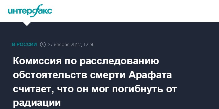 Комиссия по расследованию обстоятельств смерти Арафата считает, что он мог погибнуть от радиации