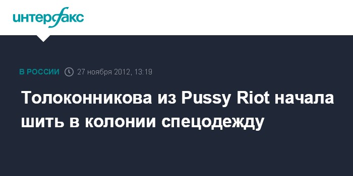 Саранск. 27 ноября. INTERFAX.RU - Осужденная участница панк-группы "Pussy Riot" Надежда Толоконникова приступила к работе в колонии в качестве швеи-мотористки.