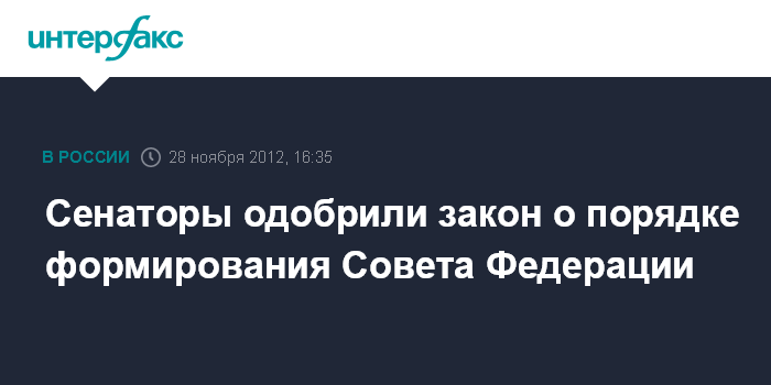 Москва. 28 ноября. INTERFAX.RU - Сенаторы в среду одобрили пакет из двух законов, инициированных президентом РФ и устанавливающих новый порядок формирования Совета Федерации.