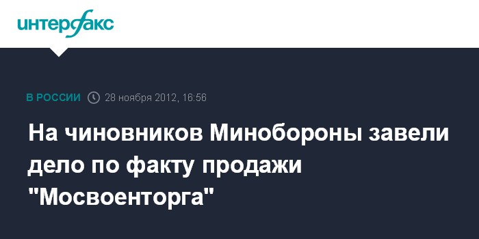 На чиновников Минобороны завели дело по факту продажи "Мосвоенторга"