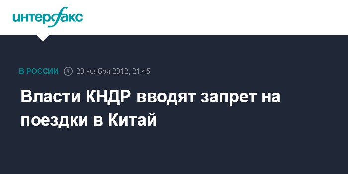 "Иностранный департамент Национального агентства безопасности ввел полный запрет на выдачу разрешений на поездки к родственникам в Китай. Запрет вступил в силу в начале ноября. Тем, кто получили разрешения в октябре, все еще разрешается выехать из страны, но они должны заполнить специальное заявление, дав обещание вернуться до дня памяти генерала (Ким Чен Ира - ИФ)", - цитирует издание слова своего источника в Пхеньяне.