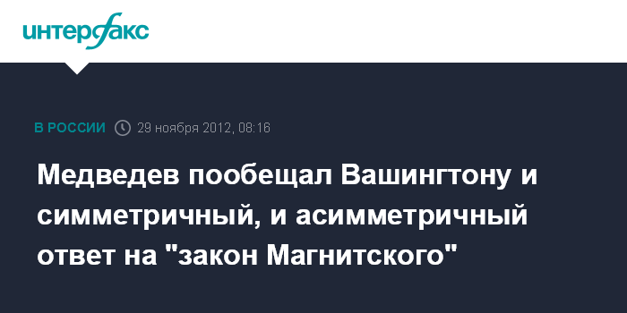 Медведев пообещал Вашингтону и симметричный, и асимметричный ответ на "закон Магнитского"