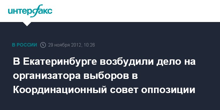 Москва. 29 ноября. INTERFAX.RU - Екатеринбургская полиция возбудила дело о мошенничестве в связи с выборами в Координационный совет (КС) оппозиции, сообщили "Интерфаксу" в прокуратуре Екатеринбурга.