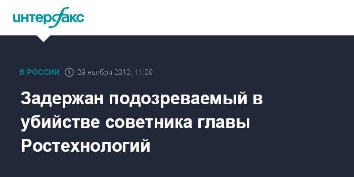Задержан подозреваемый в убийстве советника главы Ростехнологий