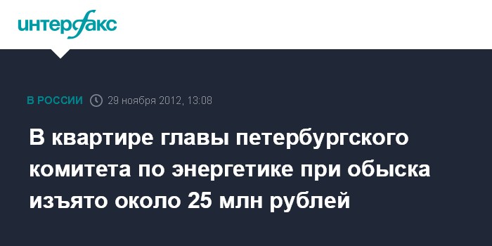 В квартире главы петербургского комитета по энергетике при обыска изъято около 25 млн рублей