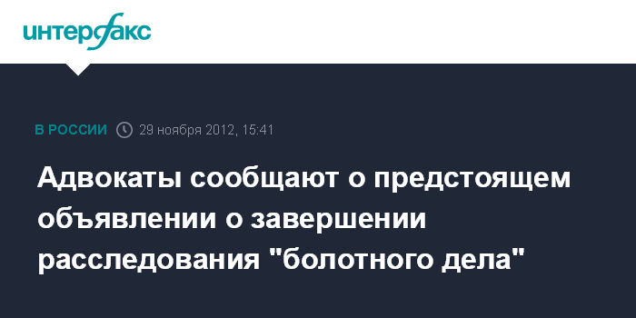 Адвокаты сообщают о предстоящем объявлении о завершении расследования "болотного дела"