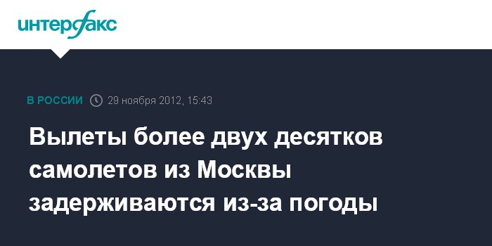 По информации московских аэропортов ("Шереметьево", "Внуково", "Домодедово"), более двух десятков самолетов не могут покинуть столицу в связи с погодными условиями.
