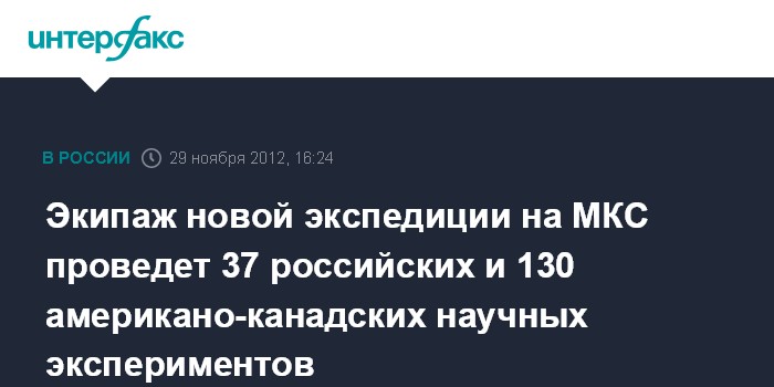 Экипаж новой экспедиции на МКС проведет 37 российских и 130 американо-канадских научных экспериментов