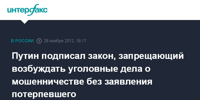 Путин подписал закон, запрещающий возбуждать уголовные дела о мошенничестве без заявления потерпевшего
