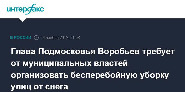 Глава Подмосковья Воробьев требует от муниципальных властей организовать бесперебойную уборку улиц от снега