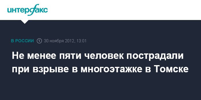 Томск. 30 ноября. INTERFAX.RU - В результате взрыва в многоэтажном жилом доме в Томске есть пострадавшие, сообщил агентству "Интерфакс-Сибирь" источник в экстренных службах города.