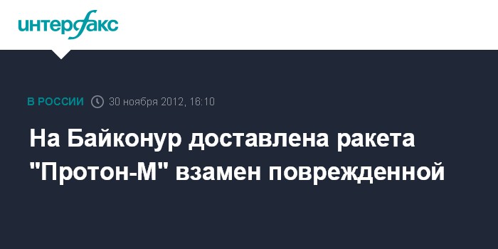 На Байконур доставлена ракета "Протон-М" взамен поврежденной