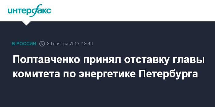 Полтавченко принял отставку главы комитета по энергетике Петербурга