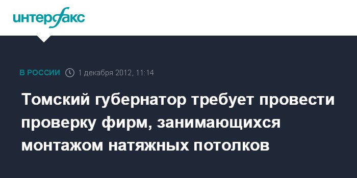 Томский губернатор требует провести проверку фирм, занимающихся монтажом натяжных потолков