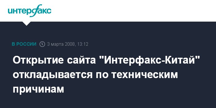 Открытие сайта "Интерфакс-Китай" откладывается по техническим причинам