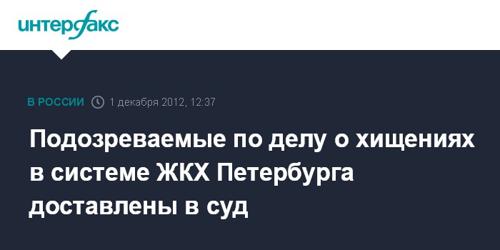 Москва. 1 декабря. INTERFAX.RU - Фигуранты дела о крупных хищениях в системе ЖКХ Санкт-Петербурга доставлены в Тверской суд для избрания меры пресечения, передал корреспондент "Интерфакса". Cледствие ходатайствует об их аресте.