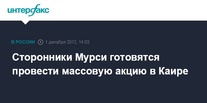 Сторонники президента должны собраться у здания Каирского университета. Организаторы ожидают, что в акции примет участие большое количество людей, что продемонстрирует народную поддержку недавней инициативы М.Мурси о расширении президентских полномочий.