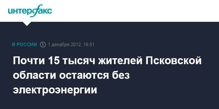 Псков. 1 декабря. INTERFAX.RU - Погодные условия в Псковской области нормализуются, но около 15 тыс. жителей региона пока еще продолжают оставаться без электроэнергии из-за массовых обрывов на ЛЭП, вызванных ледяным дождем.