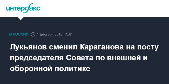 Лукьянов сменил Караганова на посту председателя Совета по внешней и оборонной политике
