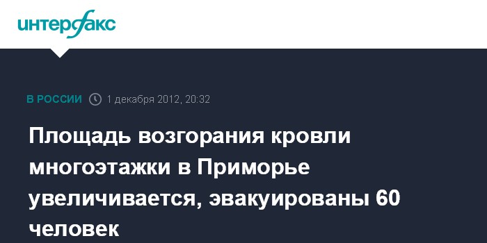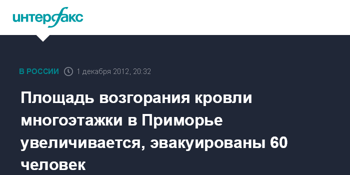 осква. 1 декабря. ИНТЕРФАКС - Площадь пожара на кровле девятиэтажного жилого дома в городе Арсеньев (Приморский край) увеличилась втрое, сообщил "Интерфаксу" источник в силовых структурах региона.