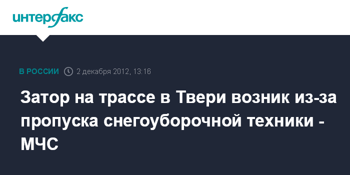 Затор на трассе в Твери возник из-за пропуска снегоуборочной техники - МЧС