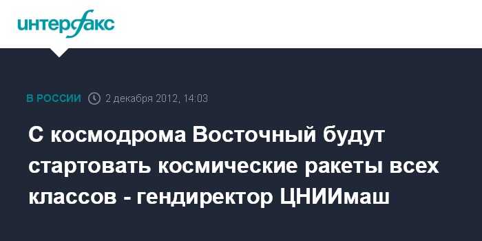 С космодрома Восточный будут стартовать космические ракеты всех классов - гендиректор ЦНИИмаш
